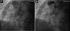 (A) Calcified giant aneurysm of the right coronary artery is easier to see on the fluoroscopy; (B) total thrombotic occlusion of the proximal right coronary artery.
