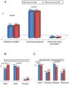 As can be seen in Figure 3A, in blood cultures from the 101 patients in whom the etiological agent could be isolated, the most frequent was methicillin-resistant Staphylococcus aureus (MRSA) (25%). Other microbes isolated included methicillin-sensitive S. aureus (MSSA) (15%), Streptococcus spp. (15%), Enterococcus faecalis (15%) and Staphylococcus epidermidis (5%) (Figure 3B). The microbial etiology of IE did not differ significantly between the two groups.