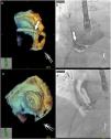 The basic concept of fusion imaging is to overlay, on the same screen, one imaging modality with good soft tissue definition, for example two-dimensional (2D) or three-dimensional (3D) transesophageal echocardiography (TEE), intracardiac echocardiography (ICE), computed tomography (CT), cardiac magnetic resonance imaging (MRI), among others, onto the image provided by the fluoroscopy, in order to compensate for its limited anatomical accuracy.3,4