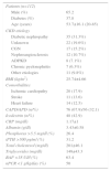 ResultsTable 1 presents clinical and biochemical parameters for the study group at PD initiation. All 112 patients studied were dialyzed using bicarbonate-buffered PD solution, and 48 (42.95%) patients were treated with icodextrin solutions. Mean age was 53.7±16.1 (range 20-85) years; 65.2% were male and 37.8% had diabetes. At baseline, 107 patients (95.6%) were treated with antihypertensive drugs (mean 3; standard deviation 1.1) and 20 patients (17.9%) were prescribed statins due to hyperlipidemia. Body mass index at PD initiation was 25.74±4.66 kg/m2. Patients were treated with PD for 29.3±17.4 months. The etiologies of ESRD are described in Table 1.