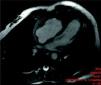 Ten days after discharge, the patient experienced recurrence of chest pain, with no fever. Control TTE showed RV apical hypokinesia and an apical mass of the same signal intensity as the myocardium with no cleavage plane between the mass and the myocardial wall (Figure 2). Pericardial thickening persisted with a moderate effusion. In the light of the new findings, the RV mass was considered to be a thrombus or tumor, or to be secondary to hypereosinophilic syndrome. Oral anticoagulation with warfarin was begun given the suspicion of a thrombus and the patient was transferred to Coimbra University Hospital for cardiac magnetic resonance imaging (CMRI) and endomyocardial biopsy (EMB). CMRI revealed marked thickening of the RV apex, of infiltrative appearance (Figure 3). Delayed enhancement showed heterogeneous areas of hyperintense signal in the RV apex, septal wall and LV apex, some of which had a subepicardial distribution. EMB revealed fragmentation of muscle bundles by eosinophils, with myocyte destruction and coagulation necrosis, compatible with eosinophilic endocarditis. The diagnosis of Loeffler's endocarditis was therefore established and treatment begun with oral prednisolone (1mg/kg/day), anticoagulation with warfarin being continued. During follow-up, the patient was completely free of pain, her eosinophil count normalized and the RV myocardial thickening disappeared (Figure 4), confirmed by CMRI (Figure 5). Anticoagulation was maintained for three months and corticosteroid therapy for six months. She subsequently had one episode of sustained back pain without hypereosinophilia or echocardiographic alterations, and was treated with corticosteroids for four weeks. The patient has been evaluated every six months by ECG, laboratory tests and TTE, and three years after beginning treatment, control CMRI shows her to be in complete remission.