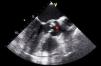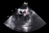 Durante o internamento, manteve-se clinicamente estável e assintomático, cumprindo antibioticoterapia dirigida. Ao trigésimo primeiro dia de antibioticoterapia é documentado em ecocardiogramas transtorácico e transesofágico desaparecimento da vegetação aórtica. No entanto, assiste-se a um aumento muito significativo do volume (catorze milímetros de comprimento) e mobilidade da vegetação mitral com pedículo mais longo e extremidade arredondada mais evidente (Figura 4); esta vegetação é muito móvel na câmara de saída do ventrículo esquerdo, entrando em contacto com a face ventricular das cúspides aórticas durante a sístole, sugerindo acentuado risco embólico.