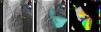 Imagens fluoroscópicas de referência no ecrã do Navigant em OAE e OAD, mostrando em tempo real a posição do cateter de ablação (estrela preta) sem recurso à fluoroscopia; o vetor automático do SNM apontando à CSVD (vetor amarelo) e feixe de His marcado (pontos amarelos).