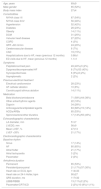 ACEIs: angiotensin-converting enzyme inhibitors; AF: atrial fibrillation; ARBs: angiotensin receptor blockers; CAD: coronary artery disease; COPD: chronic obstructive pulmonary disease; CRT: cardiac resynchronization therapy device; DCM: dilated cardiomyopathy; ECG: electrocardiogram; ED: emergency department; GFR: glomerular filtration rate (Cockcroft-Gault formula); HF: heart failure; ICD: implantable cardioverter-defibrillator; LA: left atrial; LBBB: left bundle branch block; LVEDD: left ventricular end-diastolic diameter; LVEF: left ventricular ejection fraction; NYHA: New York Heart Association functional class; RBBB: right bundle branch block.