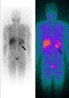 A cintigrafia de corpo com I123‐metaiodobenzilguanidina (MIBG) revelou a existência de hiperfixação nodular com aproximadamente de 3‐4cm de diâmetro a nível da suprarrenal esquerda, na mesma localização da massa observada na TAC abdominal, consistente com o diagnóstico de feocromocitoma. Não se detetavam outras zonas de hiperfixação anómalas (Figura 3).