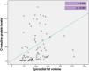 O endpoint primário ocorreu em 25,1% (n=26) dos doentes (idade média 64,8±14,8 anos, 14 homens). Um total de 10 doentes morreu. Os níveis de VAE, PCR, PCT, ferritina e IL-6 foram significativamente superiores nos doentes internados na UCI. Além disso, verificou-se uma correlação positiva entre o VAE e a PCR (r: 0,494, p<0,001), PCT (r: 0,287, p=0,005), ferritina (r: 0,265, p=0,01) e IL-6 (r: 0,311, p=0,005). Na análise de regressão logistica multivariada, os doentes com VAE>102 cm3 tinham maior probabilidade de ter complicações graves.