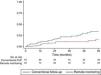 Follow-upMean follow-up was 44 months (interquartile range 20-66), with no patients lost to follow-up during the 12-year study period. Mean follow-up duration was similar between cohorts (43.0±29.8 months for conventional follow-up vs. 46.1±27.9 months for RM, p=NS). Data on the primary outcome were available for all 168 patients, and were used to calculate the Kaplan-Meier failure estimates.