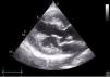 Transthoracic echocardiogram, 4-chamber apical view, showing the aneurysmal sac of the anterior mitral valve leaflet.