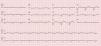 O estudo complementar realizado documentou: insuficiência respiratória tipo 2 com acidemia (pH 7,24; paO2 58mmHg, paCO2 55mmHg, HCO3 23,6mmol/l, lactatos 2,66mmol/l); anemia normocítica (Hb 12,1g/dL), sem aumento dos parâmetros inflamatórios; NT‐pro‐BNP 43300pg/ml; hiponatremia (Na+ 132,7mmol/L); doença renal crónica agudizada (ureia 24,8mmol/l e creatinina 207,8umol/l); padrão de congestão hepática (fosfatase alcalina 183U/L) com aumento das transaminases (TGO 161U/L, TGP 297U/L). A radiografia do tórax apresentava infiltrado interstício‐alveolar com padrão em «asa de borboleta». O eletrocardiograma mostrava ritmo sinusal, 67/min, bloqueio auriculoventricular do 1.° grau, baixa voltagem nas derivações do plano frontal e bloqueio completo de ramo esquerdo (Figura 1).