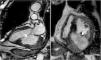 Cardiac cine steady-state free precession magnetic resonance imaging: (A) long-axis view showing a giant ventricular aneurysm (long axis 6.7 cm) of the posterior wall (arrow) containing a thrombus; (B) short-axis view above the level of the papillary muscles showing a large ventricular aneurysm of the inferoposterior wall (arrow), containing a thrombus.