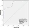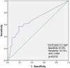 Receiver operating characteristic curve analysis curve analysis was performed to determine the optimal troponin I and PWD cut-off values for predicting AF recurrence. Troponin I≥0.11 ng/ml predicted AF recurrence with a specificity of 61.9% and sensitivity of 72.7% (Figure 1). PWD≥44.5 ms predicted AF recurrence with a specificity of 79.5% and sensitivity of 71.4% (Figure 2).