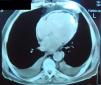 Complementary diagnostic exams included the latest echocardiographic modalities, notably assessment of LV strain and longitudinal early diastolic mitral annular velocity (E’). LV longitudinal strain was preserved, as was early diastolic mitral annular velocity (septal E’: 8.4cm/s; E/E’: 8.3) (Figure 1), with a respiratory variation of >25%. However, circumferential strain was reduced, a finding that supported a diagnosis of CP. As in the exam performed 11 years previously, chest CT showed diffuse pericardial thickening, but this time focal pericardial calcification was also observed. There were no significant parenchymal lung lesions (Figure 2). Cardiac magnetic resonance imaging (MRI) confirmed mild pericardial thickening in the basal and mid ventricular walls, reaching 3mm in the lateral LV wall (normal <2mm). Ventricular volumes and right ventricular EF were normal (LVEF 40%, moderately impaired), and there was mild mitral regurgitation. No delayed enhancement study was performed, as the patient did not wish to continue the exam.