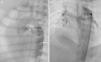 The duct in some lesions may be long and tortuous, with one or more curves and constrictions. It sometimes arises proximally and vertically from the aorta (especially in pulmonary atresia-VSD and univentricular physiology) and may have a kink at the pulmonary end where it inserts into a PA with a constriction.3,6,11 Difficulty in engaging the ductal ampulla and securing a stable wire position for advancing a stent-mounted balloon catheter through the duct has been reported with the femoral arterial route.11 This is because it allows only a short length of a guidewire to be passed into the PA. Spasm and complete obliteration of the duct during attempts to cross it with an over-the-wire catheter have also been reported. This is true especially in patients with pulmonary atresia-VSD with a vertical and tortuous duct with severe narrowing.3,6,25 Stenting has also been performed transvenously through the pulmonary valve after transcatheter relief of RV outflow obstruction.12,15,25 However, in contrast to pulmonary atresia-IVS, atresia in pulmonary atresia-VSD involves long segments, making transcatheter relief of obstruction impossible. Access to the duct transvenously through a VSD has been reported.11,26,27 In 27 patients with pulmonary atresia-VSD, we performed ductal stenting through the femoral venous route. A catheter was negotiated via the RA, RV and through the VSD into the aorta to approach the duct. The limitations of the transvenous route are need for intracardiac catheterization and negotiation of the VSD.