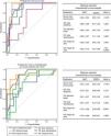 A acuidade dos diferentes parâmetros para finalidade de estratificação prognóstica foi avaliada pela área sob a receiver operator characteristic curve (AUC), com determinação dos respetivos intervalos de confiança e valor p relativamente à ocorrência de óbito aos três anos, e de óbito ou hospitalização por causa cardíaca aos três anos. Calculou‐se um score multibiomarcador, determinado em cada doente a partir da distribuição por tercis dos níveis séricos de NT‐proBNP, MR‐proANP, renina e sST2. A acuidade prognóstica do score multibiomarcador foi comparada com aquela referente aos diferentes biomarcadores e parâmetros ecocardiográficos individualmente considerados, e avaliou‐se o impacto prognóstico da estratificação com base no score multibiomarcador através da distribuição da população por tercis.