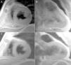 Panels A and B: short- and long-axis views, T1: double IR with contrast sequence; panels C and D: short- and long-axis views, T1: double IR with contrast sequence.