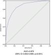 The results of univariate and multivariate logistic regression analysis are presented in Tables 2 and 3, respectively. Eight variables associated with the presence of obstructive CAD were identified in univariate analysis and entered into a multivariate model, which was simplified by removing age and hypertension, as these were not significantly associated with obstructive CAD. The AUC of the simplified model was 0.872 (95% CI 0.834–0.909). This model is summarized in Table 3. The p-value from the goodness-of-fit test was 0.333, indicating that the simplified model fit the data well.
