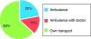 Means of patient transport to first non-PCI capable hospital. Ambulance: ambulance without doctor (pre-hospital emergency system or private transport).