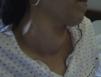 Her pulse was irregular, heart rate 115 bpm, blood pressure 147/86 mmHg; she was apyretic and peripheral oxygen saturation was 97% in room air. Physical examination revealed clammy skin and fine hair, exophthalmos and diffuse enlargement of the thyroid gland with thrill but no palpable nodules (Figure 1).