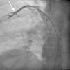 A 44-year-old man presented with several weeks of palpitations. He also described symptoms of dyspnea with mild exertion and substernal chest discomfort at rest. He had a history of long-standing systemic hypertension. The 12-lead ECG showed atrial fibrillation with rapid ventricular rate. His 2D Doppler echocardiogram revealed a mildly enlarged RA and right ventricle (RV). He subsequently underwent right and left heart catheterization with selective coronary angiography. Right and left heart catheterization with a full oximetry run to calculate shunts revealed Qp/Qs of 1.3. Selective coronary angiography was performed using right radial artery access, and showed no significant coronary disease. However, angiography of the aortic arch showed a single trunk takeoff for the large vessels from the aortic arch (Figure 1). Using right femoral vein access, a 5-Fr multipurpose diagnostic catheter was advanced into the upper (Figure 2) and middle (Figure 3) right pulmonary veins as they opened into the superior vena cava (SVC). To exclude any possible associated atrial septal defect, an MP-1 catheter was engaged into what proved to be a coronary-cameral fistula (CCF) opening into the RA separately from the coronary sinus (Figure 4), the CCF went from the coronary vein to the RA and the coronary sinus was also filled with contrast retrogradely from the vein (Figure 4). Pulmonary angiography using a 5-Fr pigtail catheter showed a moderately dilated pulmonary trunk (Figure 5). Following consultations with the cardiothoracic surgery and pediatric cardiology teams, it was felt that the best course of management would be to follow the patient clinically with serial echocardiography, as there was no significant right-to-left shunt.