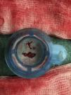 The coronary angiogram showed simultaneous acute thrombosis of the right coronary artery (RCA) (Figure 2a) and of the left anterior descending (LAD) artery (Figure 3a). Initially, to visualize suspected plaque rupture and to aid the decision whether to implant stents, multiple aspiration thrombectomies were performed, resulting in removal of substantial amounts of thrombotic material (Figure 4). After intravenous and intracoronary administration of abciximab, an everolimus-eluting stent was implanted into the RCA, restoring good epicardial coronary flow (Figure 2b). In the LAD spontaneous reperfusion occurred, revealing a massive thrombus (Figure 3b). After aspiration thrombectomy, a stent was implanted (Figure 3c). Echocardiographic examination revealed inferior wall and basal septal akinesis with ejection fraction of 35%. Right ventricular enlargement (5.4 cm in apical 4-chamber view) and hypokinesis (tricuspid annular plane systolic excursion [TAPSE] 14 mm) were present. Right ventricular function was improved on control echocardiography (TAPSE 27 mm).