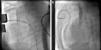 Balloon atrial septostomy or atrial septectomy was performed as a separate procedure after the hybrid stage 1. Five patients underwent balloon atrial septostomy at a median of 10 days after the hybrid procedure; in two of these, due to increasingly restrictive atrial septal flow, a surgical atrial septectomy was later performed at 26–47 days after septostomy. In three patients, due to an unusually thick atrial septum with a superiorly positioned atrial septal defect, making balloon septostomy difficult, an 8 mm×15 mm stent (Palmaz Genesis, Cordis, Johnson & Johnson, Miami, FL, USA), was placed across the atrial septum (Figures 4 and 5). One of these patients underwent emergent atrial septectomy and stent removal due to stent migration to the right atrium.