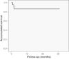 Long-term follow-upClinical follow-up was achieved in all patients. Mean follow-up was 12.9±11 months. The first patient to undergo TAVI in our center has now been followed for 30 months and is alive, with good prosthesis function. Between the 30th day and the end of follow-up two more patients died (8.7%), both between the first and second month after the intervention and neither due to cardiac cause (one from pneumonia and the other following general deterioration and multiple organ failure). Accumulated mortality at the end of follow-up was 13%. As shown by Kaplan–Meier survival analysis, all deaths occurred in the first three months, the survival curve being flat thereafter (Fig. 3). With regard to major adverse cardiovascular events (rehospitalization for prosthesis dysfunction, heart failure, stroke or myocardial infarction), two patients were rehospitalized, one for heart failure at two months (with normal valve function) and the other at three months for stroke. Survival free of major events (death or cardiovascular rehospitalization) was 91.3% at one month and 78.3% at one year. No cases of prosthesis dysfunction were recorded during follow-up.