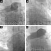 Imagens de fluroscopia durante arteriografia inicial do tronco pulmonar (mas mais seletiva para a direita), revelando TEP massiva bilateral com trombos nas artérias pulmonares principais e envolvendo todas as artérias lobares, com obstrução significativa do fluxo (A), cateter AngioJet® 6F posicionado na artéria pulmonar esquerda (B) cateter posicionado na artéria pulmonar direita (C) imagem final, revelando uma melhoria angiográfica discreta, contudo, acompanhada de melhoria imediata do perfil hemodinâmico e das trocas gasosas (D).