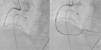 She was scheduled for primary angioplasty, which could not be performed by a radial approach due to the tortuosity of the subclavian artery (Figure 1A) and femoral access was hampered by absence of a pulse, and so a contrast-guided puncture was performed (Figure 1B and C). The external iliac artery was found to be occluded, but was passed using a hydrophilic guidewire. The mid segment of the right coronary artery was occluded by a thrombus (Figure 2A), which was removed by thrombectomy (Figure 2B).