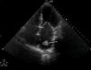 After reperfusion, signs of hypoperfusion persisted in the patient's lower limbs. In view of this finding, together with difficulty in femoral access, aortography was performed, which revealed thrombotic occlusion of the infrarenal abdominal aorta, extending to the iliac arteries (Figure 3). The echocardiogram showed a mass in the left atrium, consistent with a thrombus (Figure 4). Thromboembolectomy of the left iliac axis and femoro-femoral bypass were performed, but the patient developed multiple organ failure and died.