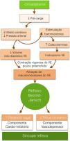 FisiopatologiaO mecanismo subjacente à síncope reflexa é um reflexo autonómico paradoxal que resulta em hipotensão (vasodepressão) e/ou bradicardia (cardio‐inibição) (fig. 1), iniciando‐se perante um determinado estímulo e respetiva aferência, que culmina numa resposta eferente com aumento do tónus parassimpático e/ou inibição do tónus simpático. Em determinadas circunstâncias, o estímulo inicial é identificado (por exemplo, hipersensibilidade do seio carotídeo), ao passo que noutras é desconhecido e frequentemente associado ao stress ortostático7.