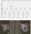 Top: Electroanatomic voltage map of a 79-year-old patient with ischemic cardiomyopathy who underwent CABG, cox-MAZE procedure and LAA ligation in 2011 for persistent AF. Patient presented to CCU with decompensated heart failure and AF with rapid ventricular response. Voltage map revealed severe right and left atrial scarring. Pre (left) and post (right) LAAEI. Note RF ablation lesions delivered at the ostium of the LAA. Middle: PentaRay catheter is in the LAA while delivering RF energy. Note that AF terminates into normal sinus rhythm. Bottom: PentaRay catheter is in the LAA showing no signals demonstrating LAAEI.