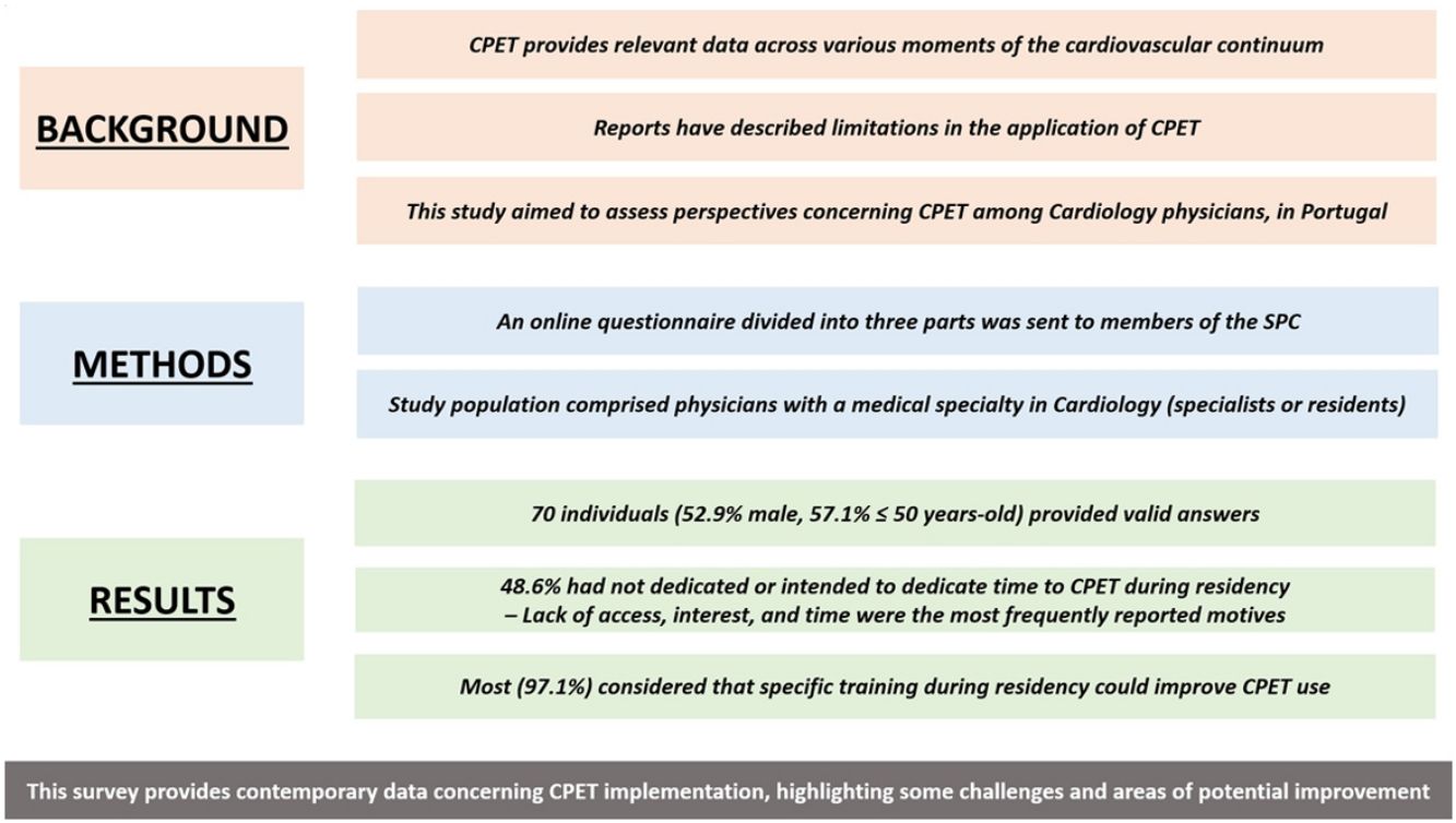 Although these limitations should be acknowledged, given the relevance of CPET in contemporary cardiovascular medicine and the limited data on its use in the specific context of this survey, we believe this study provides valuable new insights in this field. These findings, grounded in a pragmatic framework, may help guide the development of strategies to enhance CPET training and use in Portugal.