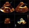 Mid-esophageal orthogonal views of the superior vena cava (SVC), ascending aorta (AO) and right pulmonary artery. Three-dimensional (3D) transesophageal echocardiography shows a large thrombus in the right pulmonary artery (white arrow), extending from the main pulmonary artery bifurcation. 3D reconstruction improves the morphological characterization of the thrombus.