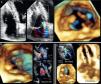 A. Vista bidimensional (esquerda) e tridimensional (direita) apical de 4 câmaras demonstrando interferência do eletrocatéter no folheto septal com regurgitação tricúspide; B. Vista tridimensional da perspetiva ventricular direita com não coaptação dos folhetos valvulares e regurgitação grave com electrocatéteres in situ; C. Vista tridimensional da perspetiva ventricular direita evidenciando dois eletrocatéteres através da válvula tricúspide com regurgitação moderada).