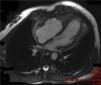 Dez dias após a alta reiniciou dor torácica, sem febre. O ETT de controlo demonstrou VD com hipocinésia do apex e uma massa apical de ecogenicidade idêntica à do miocárdio e sem plano de clivagem com a parede miocárdica (fig. 2). O pericárdio mantinha-se espessado e com derrame médio. Perante os novos achados equacionou-se a hipótese da massa do VD corresponder a um trombo, a um tumor ou representar uma massa secundária à síndrome hipereosinofílica. A doente iniciou anticoagulação oral com varfarina devido à suspeita de trombo e foi transferida para os Hospitais da Universidade de Coimbra para realização de ressonância magnética cardíaca (RMC) e biopsia endomiocárdica (BEM). A RMC revelou um marcado espessamento do miocárdio no apex do VD, com aspeto infiltrativo (fig. 3). No realce tardio observaram-se áreas de hipersinal de forma heterogénea no apex do VD, na parede septal e no apex do VE. Algumas destas áreas apresentavam uma distribuição sub-epicárdica. A BEM mostrou dissociação dos feixes musculares por eosinófilos, havendo destruição miocitária e necrose de coagulação, dados compatíveis com endomiocardite eosinofílica. Foi assim estabelecido o diagnóstico de endomiocardite de Löffler e iniciado tratamento com prednisolona oral, na dose de 1mg/kg/dia, mantendo a anticoagulação com varfarina. No seguimento registamos alívio completo da dor, normalização do valor de eosinófilos e desaparecimento do espessamento miocárdico do VD (fig. 4) confirmado pela RMC (fig. 5). A doente manteve anticoagulação durante 3 meses e corticoterapia durante 6 meses. Após esse período teve um episódio de dor dorsal mantida não acompanhado de hipereosinofilia ou alterações ecocardiográficas tendo realizado 4 semanas de corticoterapia. A doente tem tido consulta semestral onde realiza ECG, análises e ETT. Três anos depois do início do tratamento, e após a realização de outra RMC de controlo a doente encontra-se em remissão completa.