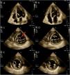 (A and B) Apical four-chamber views of transthoracic echocardiography showing snapshots of a strand-like hypermobile structure within left ventricular (LV) cavity attached to the mid portion of the interventricular septum consistent with a ruptured fibromucular false tendon. (C and D) Parasternal short axis views of the same patient showing false duplication of the false tendon image due to refraction artifact (red arrow). (E and F) Omitting of the ghost artifact by small tilting of the probe so a little change in direction of ultrasound beam propagation.