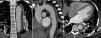Ao oitavo dia de internamento foi repetida angioTC que mostrou um ligeiro aumento da espessura do hematoma (agora com cerca de 15mm), embora sem aumento da sua extensão longitudinal, e uma das ulcerações da parede da aorta apresentava um aspeto mais profundo e irregular (figura 2). O caso foi novamente discutido com a cirurgia cardiotorácica, tendo sido recusada intervenção cirúrgica, pelo que se manteve uma estratégia de vigilância e tratamento médico. O doente permaneceu clinicamente estável durante o internamento, tendo tido alta ao 19.° dia, medicado com quatro classes de anti‐hipertensores, incluindo bloqueador‐beta, orientado para a consulta externa de cardiologia e com controlo imagiológico agendado.