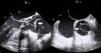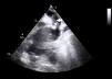 Transesophageal echocardiogram showing acute dissection of the ascending aorta.