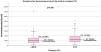 Boxplot of air kerma area product (Gy cm2) in complex PCI (LMCA vs. CTO treated patients). The figure shows median (black middle horizontal line) that correspond to achievable dose, IQR (box), 3rd quartile (Q3, red horizontal line) that correspond to DRL and the range of non-outlying data points (lower whisker: lowest data point within the 25th percentile minus 1.5 times IQR; upper whisker: highest data point within the 75th percentile plus 1.5 times IQR). CTO: chronic total occlusion; DRL: diagnostic reference level; IQR: interquartile range; LMCA: left main coronary artery; PCI: percutaneous coronary intervention; *: outliers.