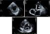 (A) Parasternal short-axis view of the mid segments. Two-layered structure of the thickened myocardium, with deep trabecular recesses in inferior, inferolateral and anterolateral segments; (B) apical 5-chamber view showing a floating thrombotic mass; (C) parasternal short-axis view showing thrombotic masses in the basal and mid segments of the anterior wall of the left ventricle.