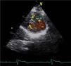 A 34-year-old woman with a history of smoking was observed for rapid palpitations of 12 years’ evolution. The symptoms occurred daily and were of short duration and not associated with dizziness, syncope or chest pain. She had no family history of sudden death, but her father had been diagnosed with idiopathic dilated cardiomyopathy. In the course of assessment she underwent electrocardiography, which revealed sinus bradycardia (36bpm), criteria of left ventricular hypertrophy, abnormal R-wave progression in the precordial leads, nonpathological Q waves, nonspecific alterations in ventricular repolarization in DII, DIII, aVF and V3–V6, and long QTc. Echocardiography showed undilated cardiac chambers and good biventricular systolic function. The left ventricle (LV) presented nonobstructive hypertrophy of the basal segments of the anterior and inferior septum and inferior wall (Figure 1), with a maximum thickness of 21 mm. Hypertrabeculation was observed at the apical level, particularly in the posterior and lateral wall segments (Figures 2 and 3). The ratio of noncompacted to compacted layers was 2.3, measured in parasternal short-axis view at end-systole. Injection of contrast showed myocardial noncompaction at the apical level (Figure 4). Magnetic resonance imaging (MRI), performed to characterize the cardiac morphology in more detail, confirmed the presence of asymmetric LV hypertrophy associated with LV noncompaction (LVNC) (Figure 5), with a ratio of noncompacted to compacted layers of 3.3, measured at end-diastole. MRI also revealed multiple areas of delayed enhancement in the hypertrophied segments. Holter monitoring did not record any clinically significant arrhythmias and exercise testing showed normal blood pressure changes. The patient's symptoms disappeared after initiation of therapy with bisoprolol. Echocardiographic study of relatives was negative for both hypertrophic cardiomyopathy (HCM) and LVNC. Genetic study identified the mutation G1505A in exon 17 of the MYBPC3 gene, which results in an amino acid substitution at position 502 of the protein (Arg502Gln).