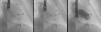 The approach was via the right femoral vein, and the tricuspid valve was crossed by a Glidecath MP catheter (Terumo Medical Corporation) and a straight guidewire. This was replaced by a pigtail catheter, and transvalvular gradients of 15 mmHg were observed. A stiff guidewire (Amplatz Super Stiff, Boston Scientific) was placed over this catheter, and a 30 mm×4 mm balloon valvuloplasty catheter (Tyshak, Numed Inc.) was introduced. Inflation was monitored by fluoroscopy (Figure 2) and RT3D-TEE. After inflation, a transvalvular gradient of 2.8 mmHg was measured by echocardiography. No tricuspid regurgitation was observed.