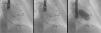 The approach was via the right femoral vein, and the tricuspid valve was crossed by a Glidecath MP catheter (Terumo Medical Corporation) and a straight guidewire. This was replaced by a pigtail catheter, and transvalvular gradients of 15 mmHg were observed. A stiff guidewire (Amplatz Super Stiff, Boston Scientific) was placed over this catheter, and a 30 mm×4 mm balloon valvuloplasty catheter (Tyshak, Numed Inc.) was introduced. Inflation was monitored by fluoroscopy (Figure 2) and RT3D-TEE. After inflation, a transvalvular gradient of 2.8 mmHg was measured by echocardiography. No tricuspid regurgitation was observed.
