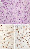 Case reportWe present the case of a 75-year-old Caucasian woman with a previous history of hypertension, dyslipidemia and a left total hip replacement. She was medicated with lisinopril-hydrochlorothiazide, bisoprolol and atorvastatin. Additionally, she was recently diagnosed with atrial fibrillation and was on warfarin. She had no previous symptoms of cardiac disease. She went to the emergency department of the local hospital due to nonspecific thoracic discomfort and malaise of over six hours duration associated with an episode of syncope. She also reported dyspnea on moderate exertion of two weeks duration. A complete blood count (CBC) and biochemistry revealed anemia and thrombocytopenia, with no other changes. The patient denied other signs or symptoms. Physical examination revealed a low-amplitude arrhythmic pulse, no heart murmurs and no signs of pulmonary congestion, blood pressure of 95/56 mmHg, heart rate of 101 beats per minute, and peripheral oxygen saturation of 85%. The CBC revealed anemia (Hg 8.9 g/dl) and thrombocytopenia (80 000 U/l). Biochemistry results revealed elevated serum cardiac troponin I (0.9 ng/ml; normal <0.04 ng/ml). A chest X-ray revealed a cardiothoracic index of >50% with widening of the mediastinum. The ECG revealed atrial fibrillation with ST-segment elevation in V2-V6, I and aVL. The patient was immediately transferred to a tertiary centre for emergent coronary angiography, which revealed a long stenosis of 50% in the mid-distal portion of the left anterior descending artery (with TIMI 3 flow) and a focal 30% stenosis in the mid segment of the right coronary artery (Figure 1). Left ventriculography revealed a hyperkinetic left ventricle and apical akinesia but otherwise normal systolic function. In the minutes after cardiac catheterization, the patient developed hypotension (systolic blood pressure of 85-90 mmHg) and slight chest discomfort persisted. An echocardiogram was performed and revealed a large pericardial effusion with diffuse thickening of the myocardium, mainly in the anterolateral wall and apex, which was assumed to be adherent fibrin (Figure 2). Due to worsening hemodynamic status and echocardiographic findings in a patient with chest pain, ST-elevation on the ECG and elevated cardiac troponin, cardiac rupture was suspected and the patient underwent urgent sternotomy and pericardiotomy with drainage of a large quantity of bloody fluid followed by hemodynamic recovery. The surgeons then identified a large unresectable tumor occupying the distal half of the anterior portion of the heart, which was biopsied (Figure 3). The patient was admitted to the cardiothoracic intensive care unit and was extubated on day 2 after surgery, and was then transferred to an intermediate care unit, with a favorable clinical status. A cervical-thoraco-abdominal-pelvic computed tomography (CT) scan was performed that identified myocardial tumor infiltration (measuring 6 cm×7 cm×11 cm) and pulmonary, cervical and abdominal wall metastases. The pathological study revealed a malignant mesothelioma. The immunohistochemical study documented diffuse expression of AE1/AE3, vimentin and MDM2 in tumor cells and focal expression of calretinin, EMA, podoplanin, desmin and p53 (Figure 4).