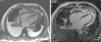 Depois da ecocardiografia, a RM cardíaca é o método de imagem de escolha para o estudo do pericárdio. Devido à sua composição fibrosa, o pericárdio saudável revela‐se como uma estrutura hipointensa nas sequências ponderadas em T1 e T2. Na pericardite constritiva, as características morfológicas típicas são o espessamento global das lâminas do pericárdio (>4mm em espessura) e a presença de realce tardio no pericárdio, que se correlaciona com a fase aguda da inflamação pericárdica8. A RM permite ainda a adequada diferenciação entre derrames pericárdicos de pequenas dimensões e o espessamento pericárdico, a deteção do septal bounce e da aderência entre o pericárdio e o miocárdio2. A TC cardíaca também é útil no diagnóstico da pericardite constritiva, na medida em que permite demonstrar o espessamento e a calcificação pericárdicos, tal como a dilatação da VCI e a angulação do SIV. A perda do comportamento pulsátil das estruturas pulmonares imediatamente adjacentes ao coração, associada ao espessamento pericárdico, é altamente sugestiva de uma fisiologia constritiva3. Destaca‐se o valor adicional destes dois métodos de diagnóstico, sobretudo quando as variações respiratórias ecocardiográficas são equívocas, bem como quando nos encontramos na presença de outras condições clínicas que podem estar associadas ao aumento da variação respiratória dos fluxos transvalvulares, como sejam a obesidade e a doença pulmonar obstrutiva crónica9.