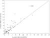 Aortic atheroma was found mainly in the descending aorta (50%) but rarely observed in the ascending aorta (2%) or aortic arch (2%). Multiple plaques were observed in the descending aorta. Measurements of aortic plaque thickness were similar for both 2D and 3D echocardiography (0.29±0.03 cm with 2D TEE and 0.29±0.04 cm with 3D TEE), whereas, for plaque area, 2D TEE measurements were slightly underestimated when compared to 3D TEE (0.24±0.02 cm2 versus 0.37±0.03 cm2 for 2D and 3D TEE respectively, p<0.05), displayed in Table 3. Correlation for aortic plaque thickness measurements and the area was very good (r=0.91 and r=0.80 respectively, Figures 1 and 2). Agreement regarding the measurements is depicted in Bland-Altman plots for both thickness and plaque area (Figures 3 and 4). Ten patients had aortic plaque ulcerations; in five of these patients, only 3D TEE identified the ulcers; in the remaining five, ulcers were detected by both methods (kappa=0.64). Images of aortic ulcerations with 2D and 3D TEE are shown in Figure 5. Regarding the number of ulcerations, 3D TEE identified 6 ulcerations, unseen with 2D TEE (one patient had two ulcerations). Regarding the mobile components of the plaque, plaque debris were observed in two patients with 2D TEE, whereas with 3D TEE, debris were seen in three patients. Altogether, 16 (20%) patients had a diagnosis of a complex aortic atheroma (aortic plaque lesions >4 mm, aortic ulcers, and debris). In six patients, it was defined by both methods, in seven diagnosis was only with 3D TEE, whereas in three patients only with 2D TEE, resulting in a modest agreement between the two methods (kappa=0.54). Discrepancies resulted from the non-visualization of one aortic plaque debris and six ulcers using 2D TEE (p<0.05). of note, for 2D TEE, in the three patients with lesions measuring >4 mm with 2D TEE but considered <4 mm with 3D TEE, the plaque was ulcerated and similarly regarded to be complex, because of the coexistence of lesions. Diagnosis of a complex plaque was improved with 3D TEE compared to 2D TEE (p<0.05).