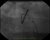 Para melhor esclarecimento efetuou ecocardiograma transesofágico (ETE), que revelou disfunção da prótese mitral (regurgitação patológica intraprotésica moderada a grave presente, de forma intermitente, apenas em alguns ciclos cardíacos) causada pela interposição, também intermitente, da estrutura filamentosa descrita através dos discos da prótese, impedindo o seu normal funcionamento (Figura 1). A fluoroscopia confirmou o encerramento deficiente, intermitente, de um dos discos da prótese mitral (Figura 2).